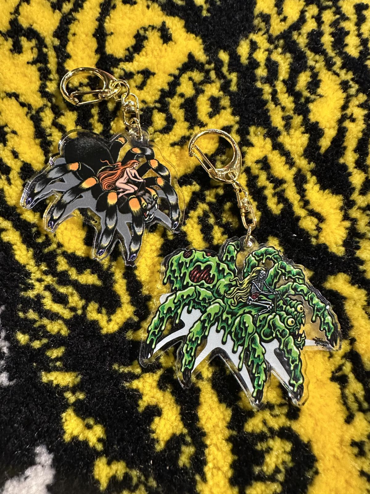 QEESKULL®︎完全版のキーホルダーが入荷致しました✔︎ レトロでどこか懐かしく昭和感漂う昔のガチャガチャを連想させるアクリルキーホルダーにて"タランチュラ"を製作していただきました。特筆すべきは表からも裏からもタランチュラ®︎を楽しめるところ!グラフィックの細かいところ・色味もしっかりと再現されております◎